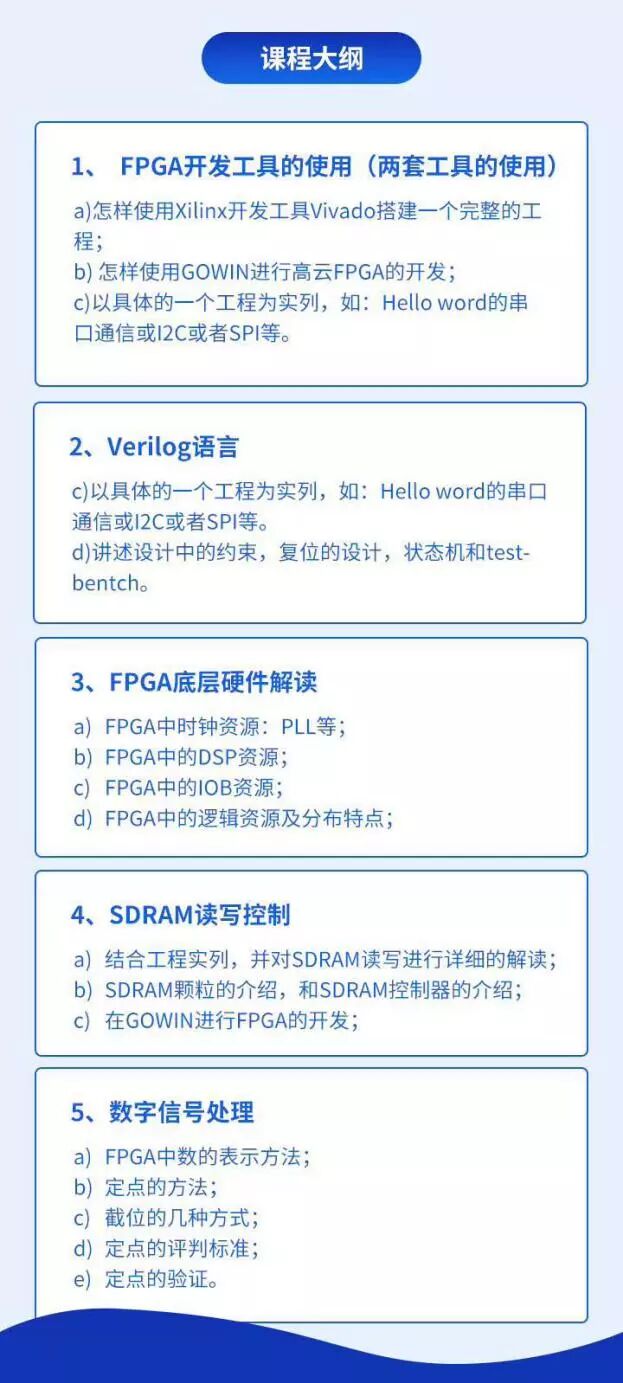 • FPGA开发版视频(线下培训结束后,每周不低于两节持续更新)+不定期线下培训;