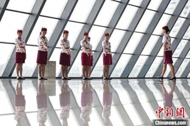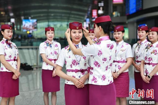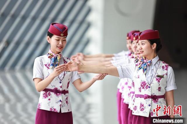 6月29日,重庆客运段动车一队和动车四队组织乘务人员开展服务礼仪培训,重点对乘务员的站姿、蹲姿、手势指引等方面进行强化训练,提升乘务员“窗口”形象,为即将到来的暑运做好准备。图为乘务员正在进行服务礼仪培训。苏志刚 摄