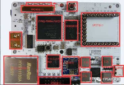 硬件资源列举如下: Zynq-7000 XC7Z020-1CLG400C; 512MB的DDR3内存颗粒; PS系统时钟源:33.333MHz LVCMOS晶振; PL系统时钟源:50MHz LVCMOS晶振; SDIO PHY及接口; USB_UART PHY及接口; HDMI PHY及接口; 千兆以太网PHY及接口; 用户IO:复位键、按键SW、LED灯; JTAG接口; 扩展接口:UP27接口,支持十种传感器模块,FP40,支持高清摄像头(EagleGo-HD),高速ADC/DAC(EagleGo-DSP)等;电源:3.3V、1.8V、1.3V、1V;