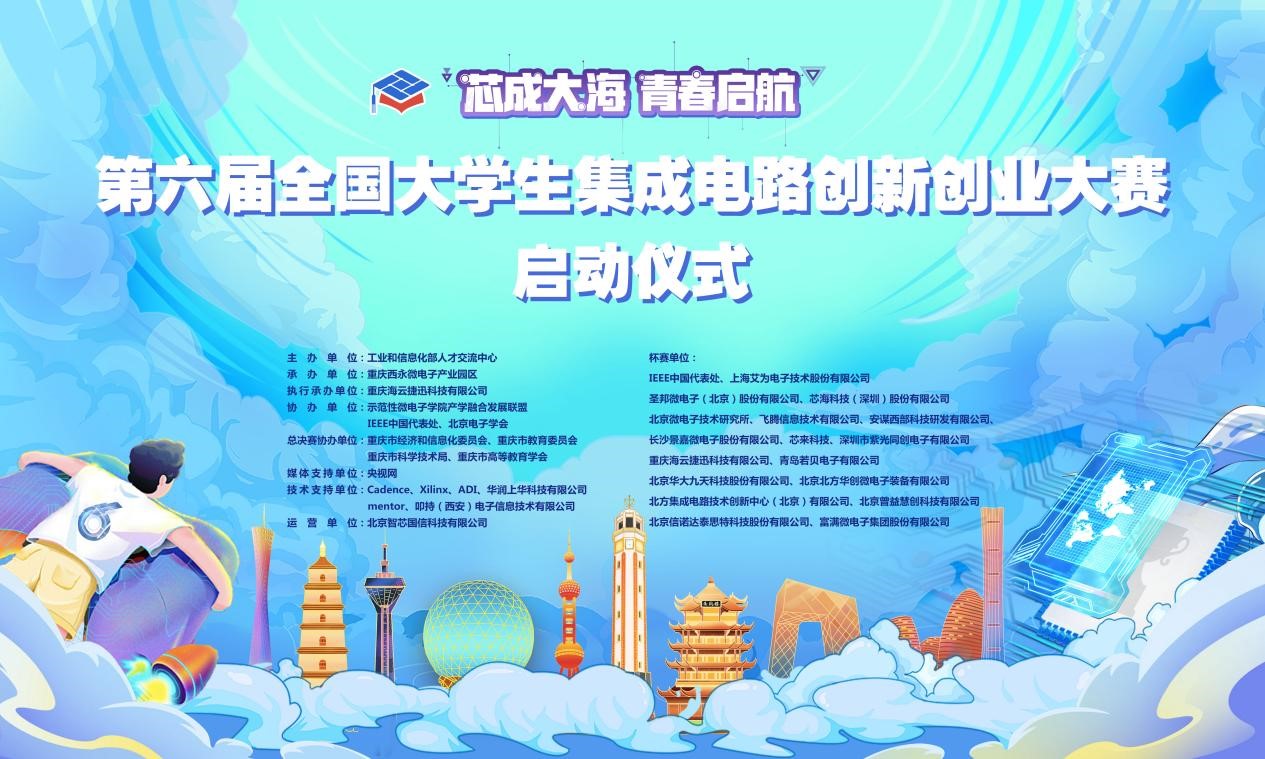 2021年1月12日,由工业和信息化部人才交流中心主办,重庆西永微电子产业园区承办,重庆海云捷迅科技有限公司执行承办的“第六届全国大学生集成电路创新创业大赛”启动仪式在线上举行。此届大赛得到了重庆市经济和信息化委员会、重庆市教育委员会、重庆市科学技术局、重庆市高等教育学会的大力支持。