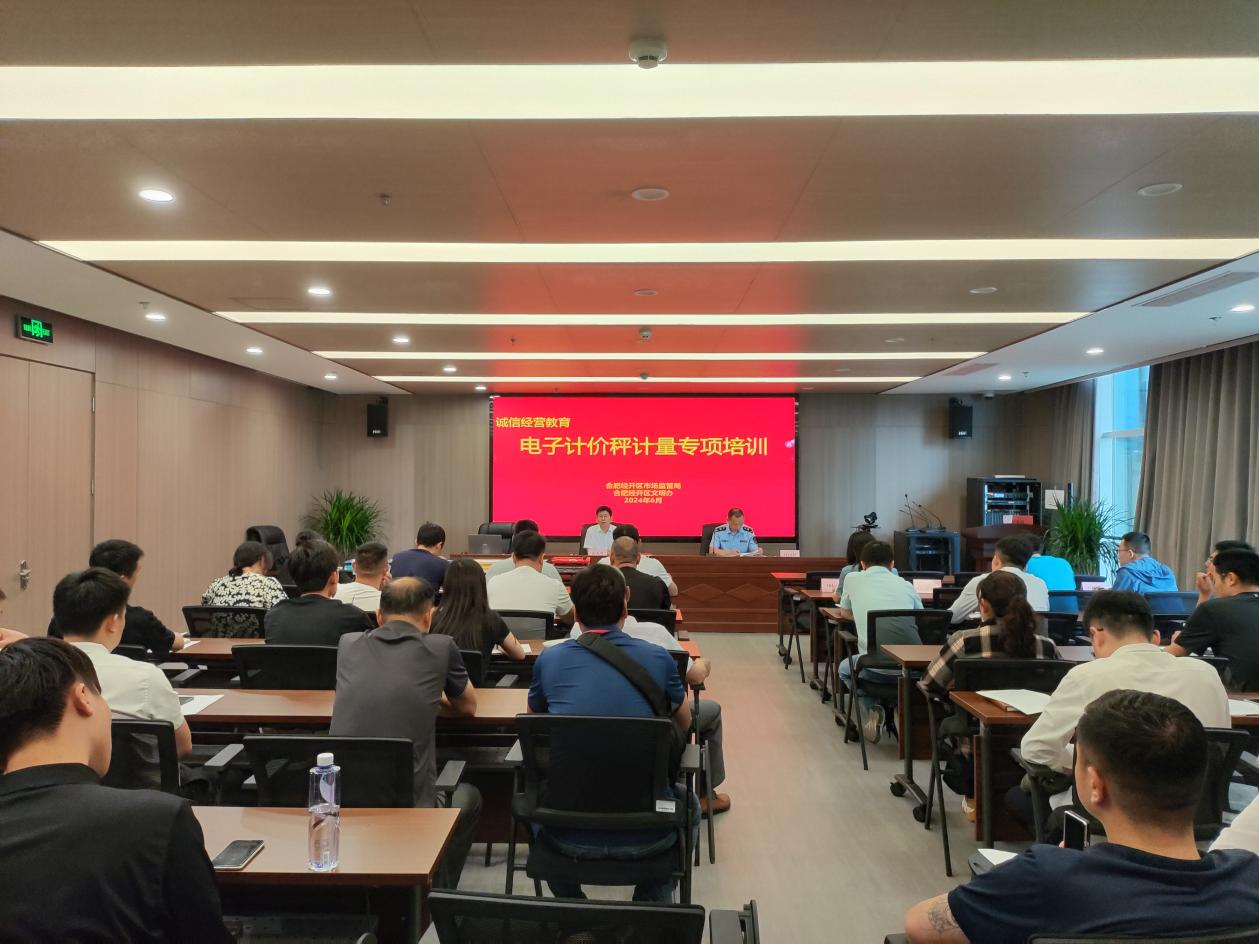 为进一步提升市场主体文明守信合法经营意识,严厉打击电子计价秤“缺斤短两”计量违法行为,切实维护消费者合法权益,近日,合肥经开区在中德合作园开展诚信经营教育——电子计价秤计量专项培训会。各市场监管所、质监科、市场科、执法大队负责人及监管人员,集贸市场主办方、大型综合商业综合体、餐饮集中区管理方等相关单位负责人参加会议。