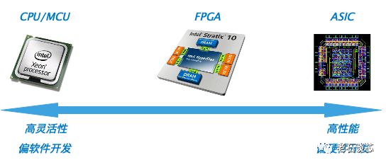 在下图中,老石对比了FPGA与ASIC、CPU(或单片机)的特点与主要开发方式和风格。
