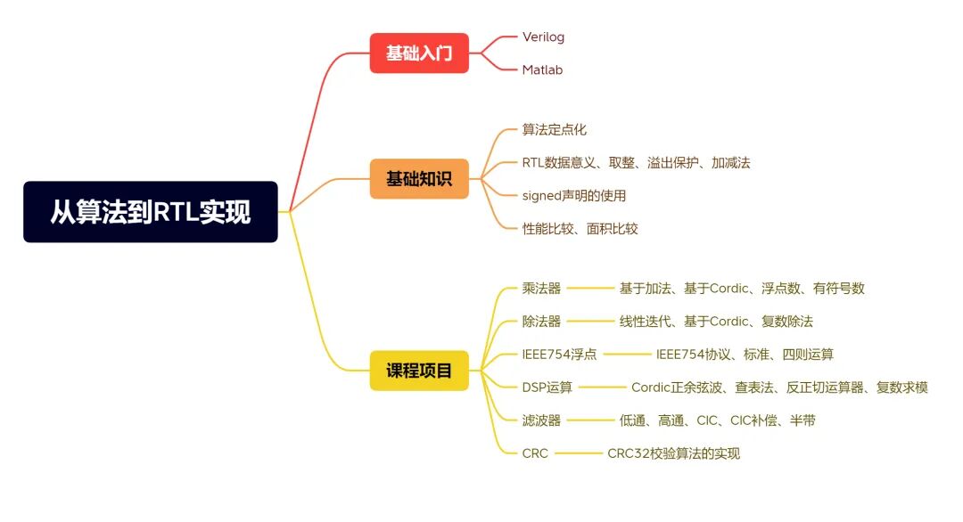 乘法器设计实践、除法器、IEEE754实践、常用DSP、滤波器、CRC校验等;即将开课