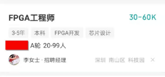 招聘网站,搜索“FPGA工程师”得到如下结果,可以看到,三年的工作经验大部分月薪都有 20k 左右,也有更高的30k、40k的。