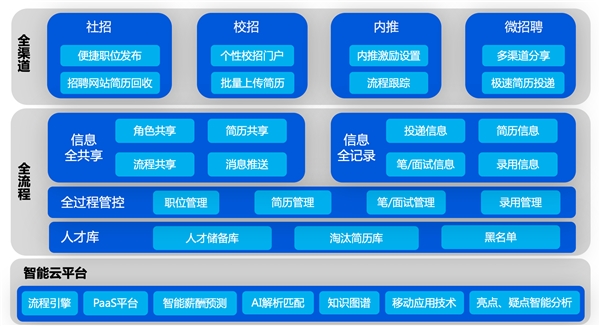 因而,对于HR而言,想在这场汲取优质新鲜血液的“战斗”中能取胜,必然离不开强大的“装备”支持。对此,具有一体化、智能化招聘强大功能的致远互联薪事力人力云,从选人、招人、留人等招聘业务全流程给予了HR硬核支持。