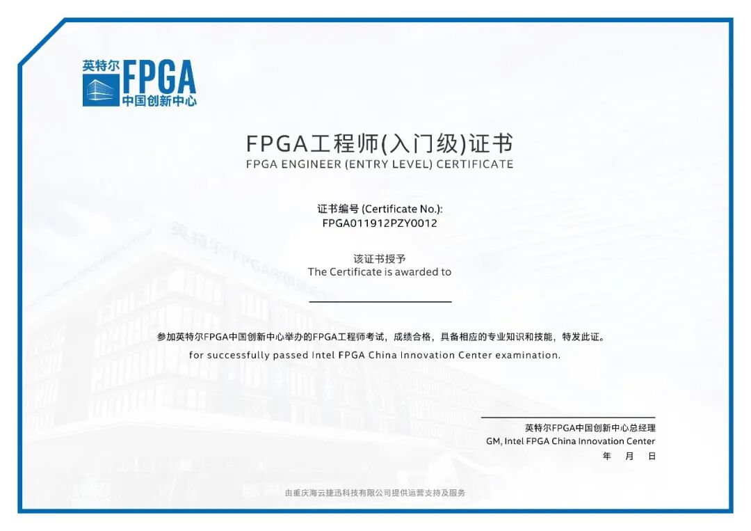 获得英特尔FPGA创新中心认证颁发的工程师证书