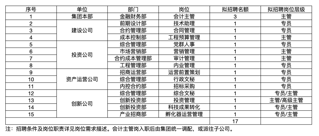 一、招聘岗位及条件