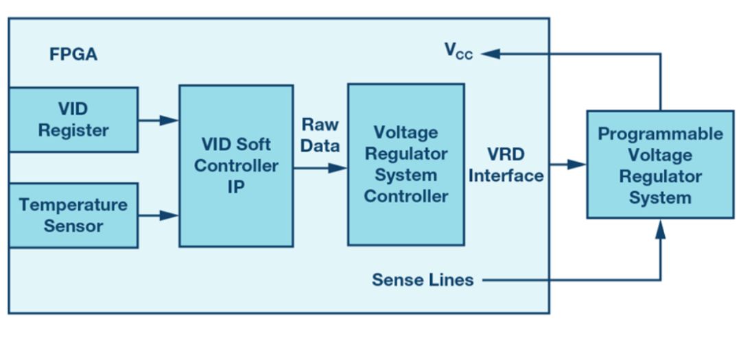 SmartVIDSmartVID是Altera公司出品的一种技术,该技术用于按照FPGA本身的要求,为每个FPGA提供最佳电压。FPGA内部有一个寄存器,其中包含一个因器件而异的电压(已在出厂中编程),可保证FPGA高效运行。FPGA内部编译的一项IP功能可以读取该寄存器,并通过外部总线向电源发出请求,要求提供这个精确的电压(图4)。一旦达到电压要求,它就会在运行期间保持静止。