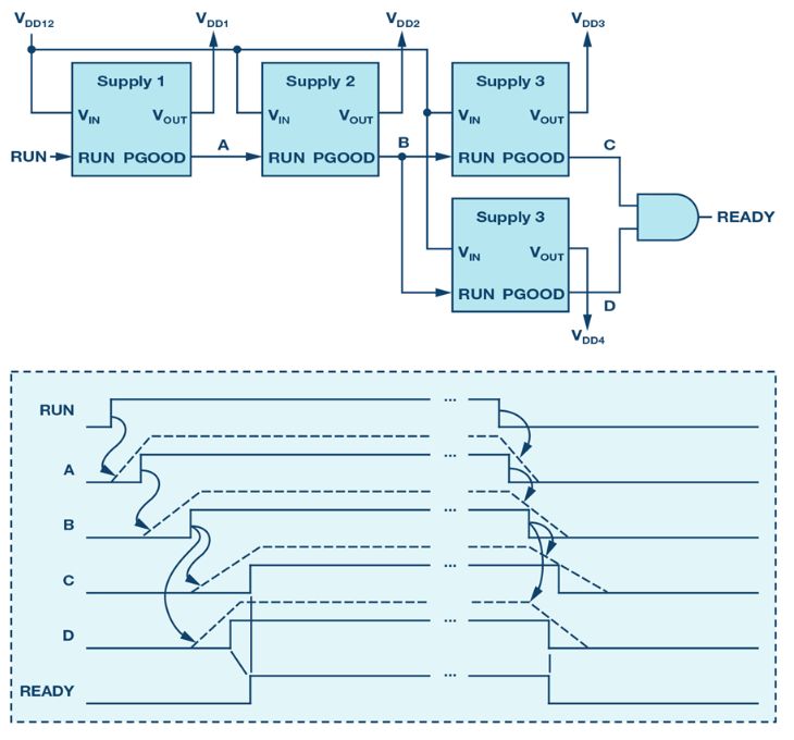 类似地,Xilinx针对Virtex UltraScale FPGA升序序列的建议为:VCCINT/VCCINT_IO、VCCBRAM、VCCAUX/VCCAUX_IO和VCCO。降序序列与升序顺序4相反。这些只是众多FPGA中的两种。几乎每个现代FPGA系统都有多个电源轨,最明显的一个问题是,它们应以何种顺序打开和关闭?即使没有明确的定序要求,也有充分的理由,强制以确定性的序列来执行事件。以下是一些可用的设计选项。