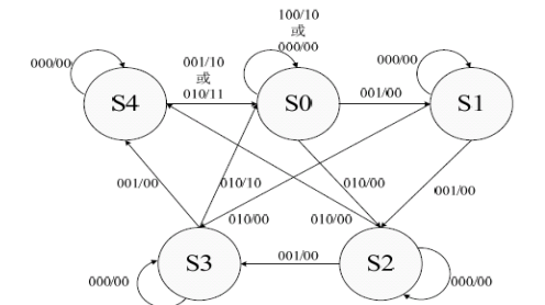由上面的分析可以画出该状态机的状态转换表,如下表所示(方便起见,这里 给出输入变量为非法状态时的转换表)