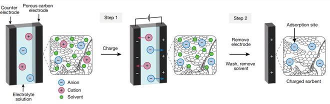 研究中,他和合作者通过利用电化学技术,将分离之后的带电离子作为吸附位点,借此开发出一种新型吸附剂材料,并将其命名为带电吸附剂(Charged sorbent)。