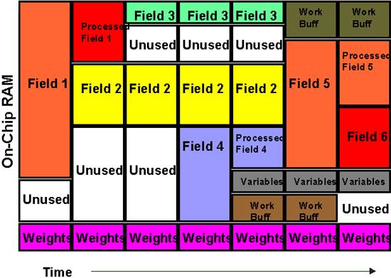 每个群还包含两个单端口逻辑群存储器模块和一个多端口通道存储器模块。前者每模块有8,192b存储器,后者包含4,096b专用通信存储器且可配置为单端口、多端口或带专用控制逻辑的FIFO。