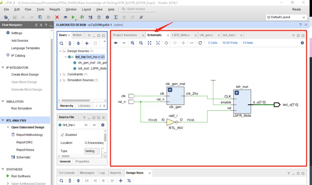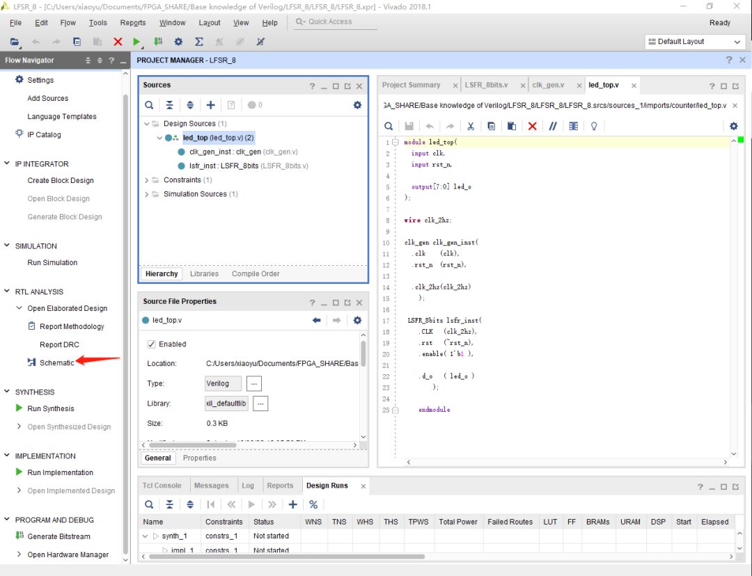 1. 在Flow Navigator 下点击RTL ANALYSIS -> Open Elaborated Design -> Schematic