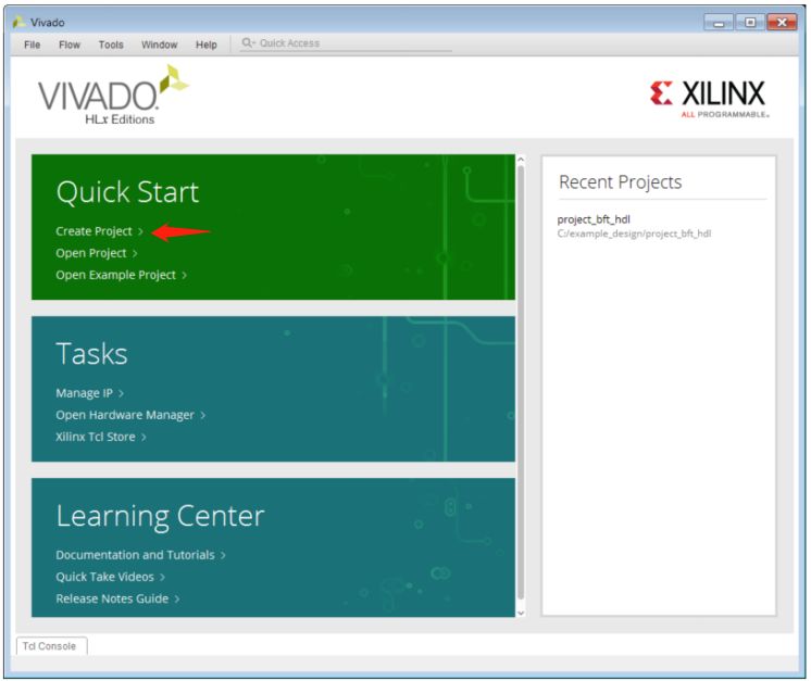 1. 安装好Vivado之后,在Windows系统 Start > All Programs > Xilinx Design Tools > Vivado> Vivado ,或者桌面上找到如下图标,点击打开Vivado。