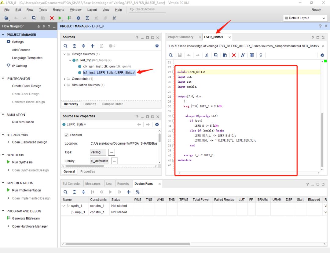 当然在介绍的过程当中会给大家推荐一些对于工具深入使用的Xilinx官网资料。这里以流水灯的控制为例。
