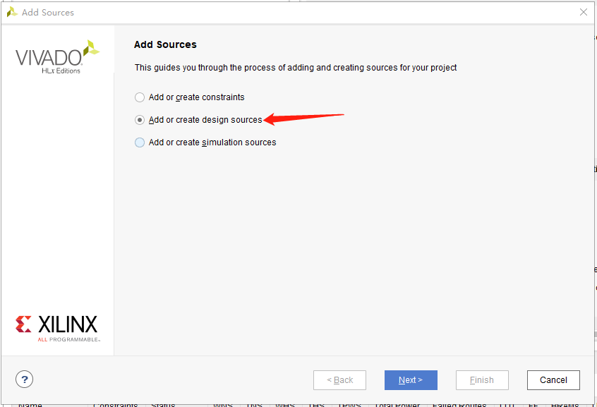 2. 如下界面,第一个是添加或者新建XDC约束文件;第二个是添加或者新建设计文件;第三个是添加或者新建仿真文件。这里选择添加或者新建设计文件,再点击Next。