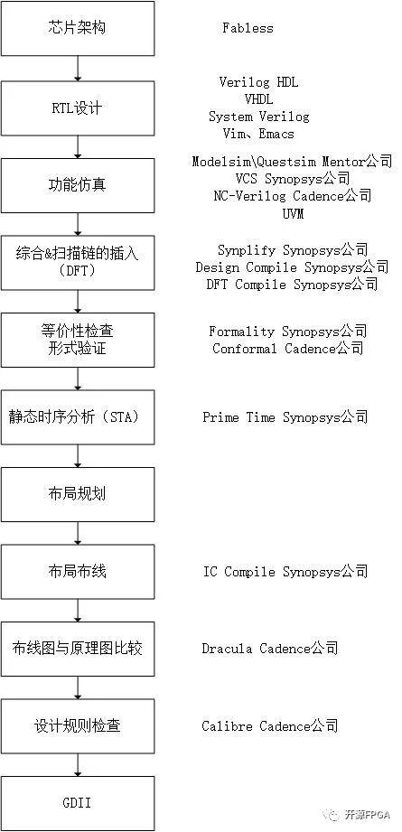 题目:简述ASIC设计流程,并列举出各部分用到的工具。