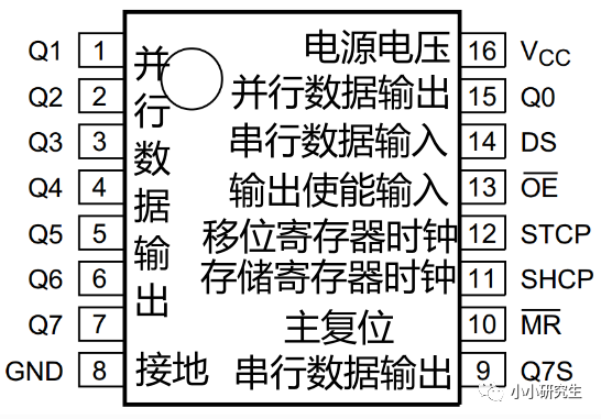 将13引脚置为低电平,存储寄存器的数据会在Q0-Q7并行输出,同时并行输出的数据会被锁存起来。