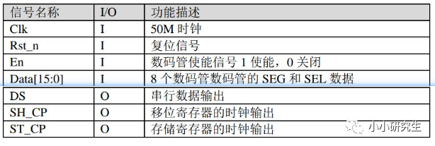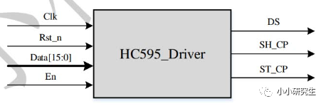 包括输入:时钟信号、复位信号,段选信号,位选信号,输出使能,输出:芯片的四个输入引脚(寄存器时钟,存储器时钟,数据输入)。这个模块最重要的是弄清楚怎么通过控制Cyclone IV E和芯片连接的引脚,让芯片产生正确的输出,去驱动数码管正确的显示图形。