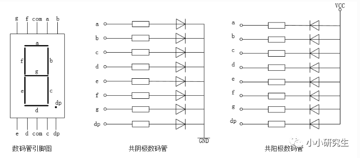 硬件资源数码管常见数码管分为七段或八段,八段是多一个小数点。也可分为共阴极或共阳极,观察下面的原理图,共阴极数码管对应端口为高电平时对应二极管点亮,共阳极则相反。
