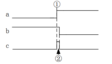 在使用 Verilog HDL 描述状态机时,习惯性的使用两个均采用时序逻辑的 always 块,第一个 always 块描述状态的转移, 第二个 always 块描述数据的输出, 这样既消除了组合逻辑可能产生的毛刺, 又减小了代码量。组合逻辑产生毛刺可由图 1 说明,输入两个变量 a 和 b 进行相与, 理论上认定 a 和 b 在①处同时变化,这样相与的结果一直为低,然而由于布线的差异, a 和 b 同时变化的可能性很低,这样就会出现图 1 所示的情况,此时 a 和 b 相与的结果就会造成如图 1 所示的结果, ②处为组合逻辑产生的毛刺。图 1 组合逻辑产生毛刺