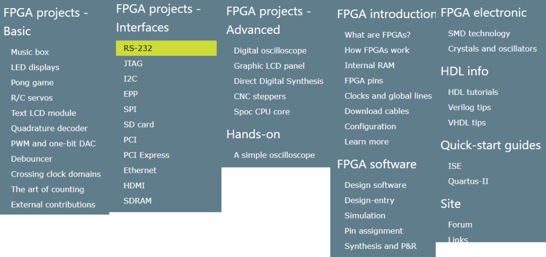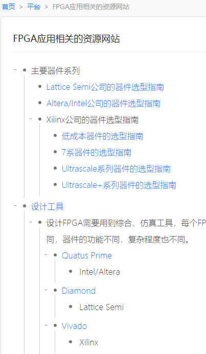 这个网站根据不同的分类整理了许多的FPGA资源和网站,是个不错的导航型网站。