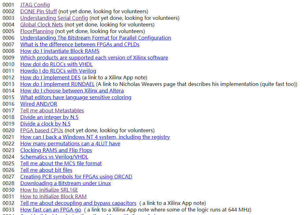 该网站收集了大量FPGA使用过程中的常见问题,只是这个网站比较老,内容多为多年前整理。