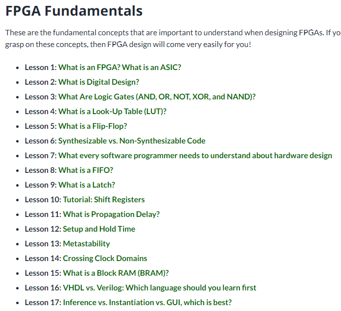 可以学习FPGA,Verilog和VHDL,基本上每节课都配有视频教程,遗憾的是它没有中文字幕。