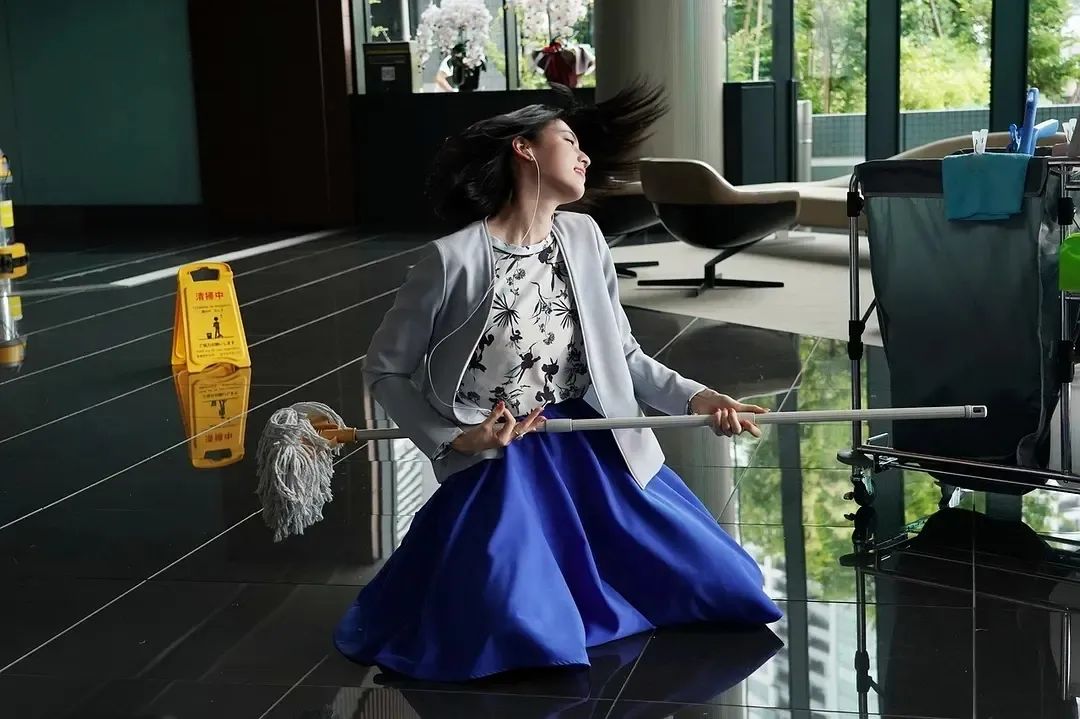 台下的人要求上台的人面对观众而不是屏幕。音乐响起,台上的人手舞足蹈、上蹿下跳,完全随性,没有一个动作重样。有些人跳自创的新动作,有些人跳了3秒就放弃了。大家哄堂大笑。
