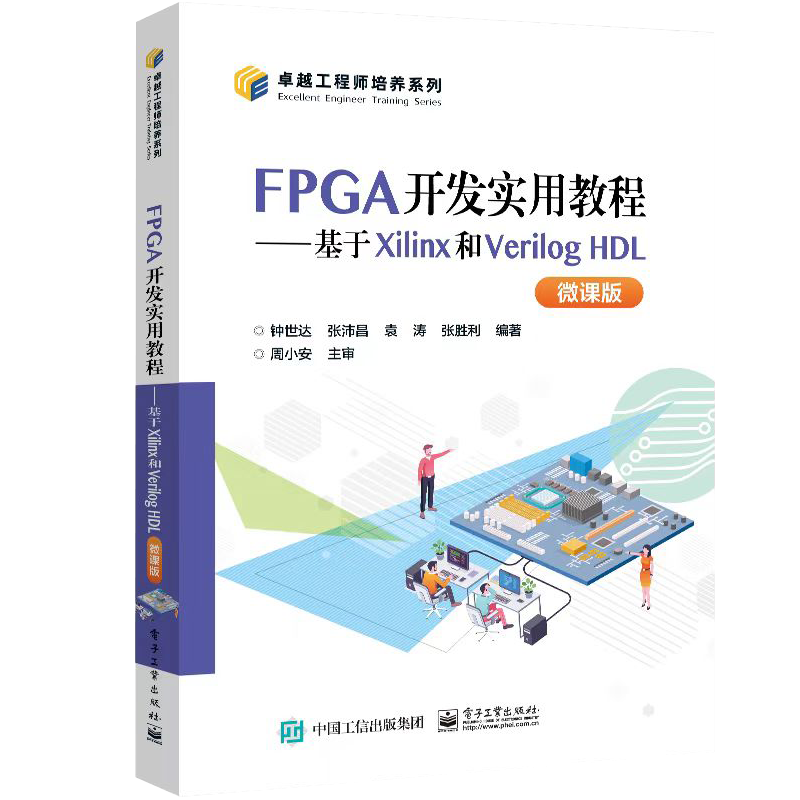 卓越工程师培养系列”《FPGA开发实用教程——基于Xilinx和Verilog HDL(微课版)》是一本基于Xilinx和Verilog的FPGA程序设计开发书籍,通过12个实验,学习分频、矩阵键盘、OLED显示、数据存储与读取、串口通信等基础功能的原理与应用,由浅入深