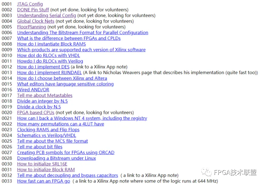 11、FPGA-FAQ网站地址:http://www.fpga-faq.org/ 收集了大量FPGA使用过程中的常见问题,只是这个网站比较老,内容多为多年前整理。