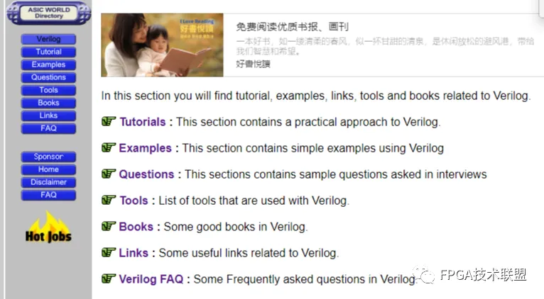 这是一个为ASIC/DIGITAL /FGPA学习者量身打造的网站,在这里你可以学到很多种语言,内容非常丰富。光是学习Verilog,就包括了教程、示例、疑问、工具、推荐书籍、链接和常见问题等部分。