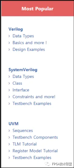 网站地址:https://www.chipverify.com/ IC/FPGA开发语言学习网站,和上一个网站 FPGA Tutorial 差不多,同样写得非常简单清楚,也很适合初学者。