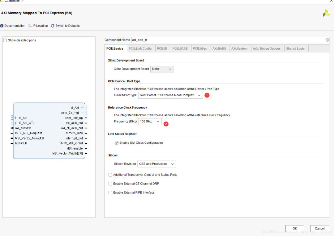 7、PCIE参考时钟的频率,与板子的时钟情况有关,这里是100MHz