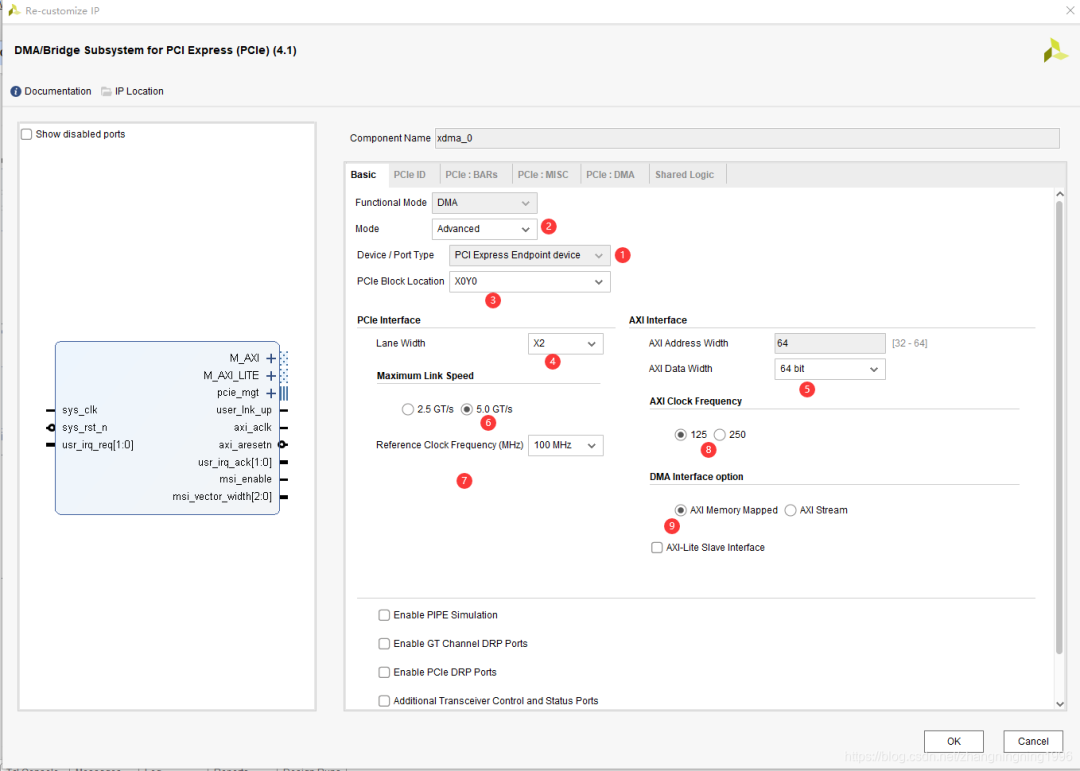 经过上面的设置,我们已经定制了常规的XDMA IP,接下来讲解常用的Block Design设计。