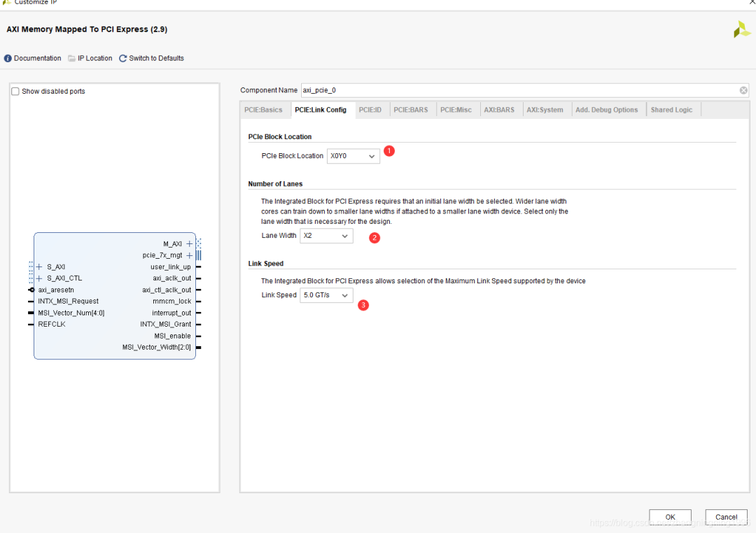 3、PCIE硬核的位置,这里我们的芯片只有一个硬核,所以这里默认即可