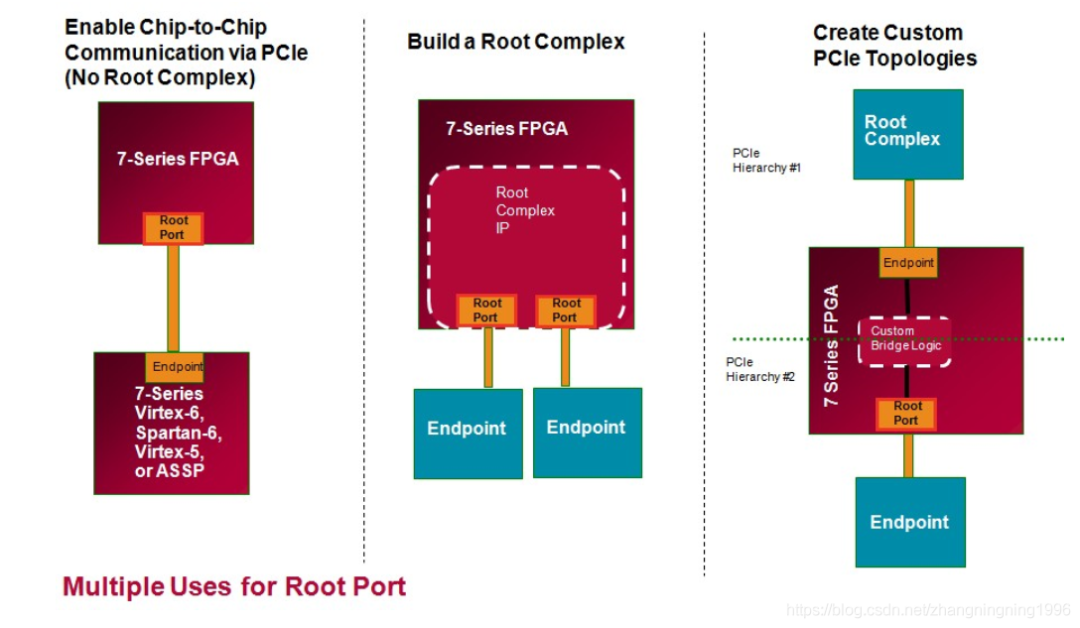 FPGA在PCIE中可以成为Root Complex、Switch和 End point: