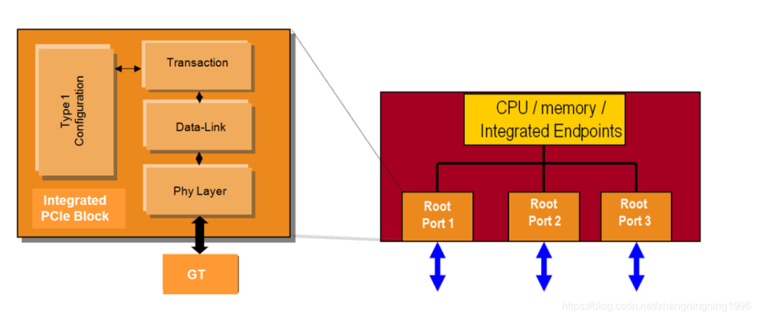 从上面我们可以看出PCIE应用架构主要包括四部分: