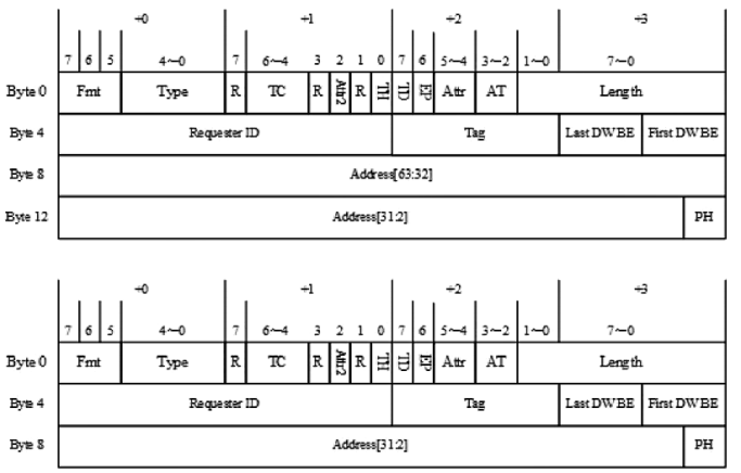 注意的是,根据PCIE协议的Mwr,一次Mwr/Mrd数据大小最大可以是4096Byte,上面大于4Byte分了多次Mwr发送是驱动程序的做法。看到时序图的信号都是满足要求的,但是具体信号的数据是怎样的呢?现在以读写12Byte Memory为例来分析这些数据。