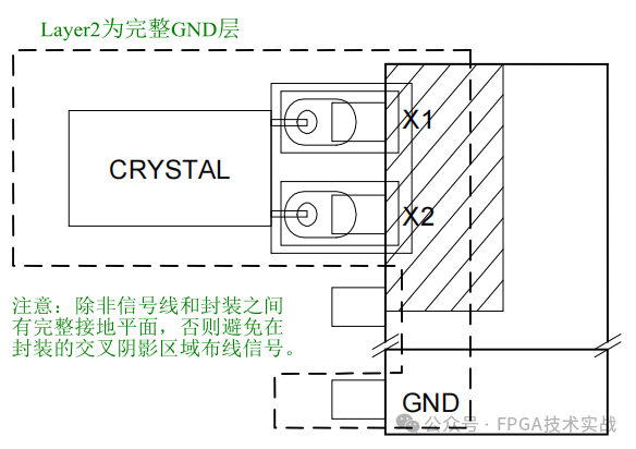 表1:外部晶体的参数要求时钟的精度取决于晶体的精度以及振荡器电路的电容性负载与晶体的电容性负荷之间的匹配精度。温度偏移引起的晶体频率漂移将增加额外的误差。耦合到振荡器电路中的外部电路噪声可能导致时钟快速运行。图3显示了用于隔离晶体和振荡器与噪声的典型PC板布局。