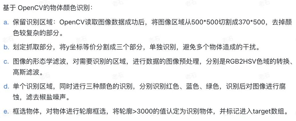 摄像头识别的部分,使用OpenCV来实现。主要的工作有两个部分,分别是颜色识别、以及物体中心坐标定位。每部分的具体操作在下图中所示: