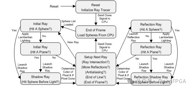 使用光线追踪实现了硬件 3D 渲染引擎。通过流水线和利用算法中的并行性加快其运行速度。