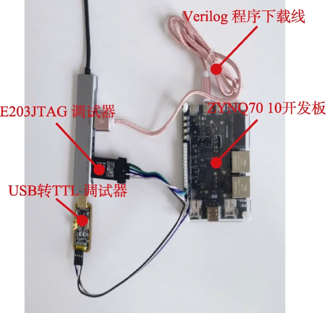 首先需要将蜂鸟E203微处理器移植到ZYNQ开发板上,使用的软件平台包括Xilinx公司推出的集成设计环境Vivado,以及芯来科技推出的集成开发环境Nuclei Studio,在调试过程中使用RISC-V配套的GNU工具链。