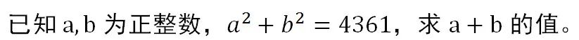 1.对4361进行开方计算,得到结果最大为66,则a,b的值均小于等于66。