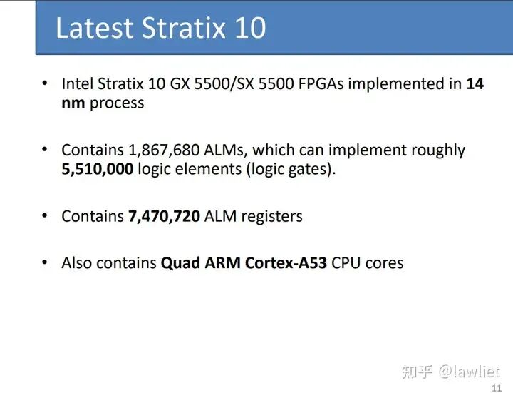 然后介绍了ALM之间的连接,以及Stratix 10这款FPGA。(说实话,看到这里我感觉是Intel给这位老师钱了,让他打广告。。。)