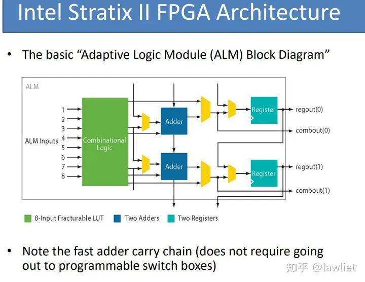 上图是ALtera的FPGA的ALM框图。其针对加法链做了优化。