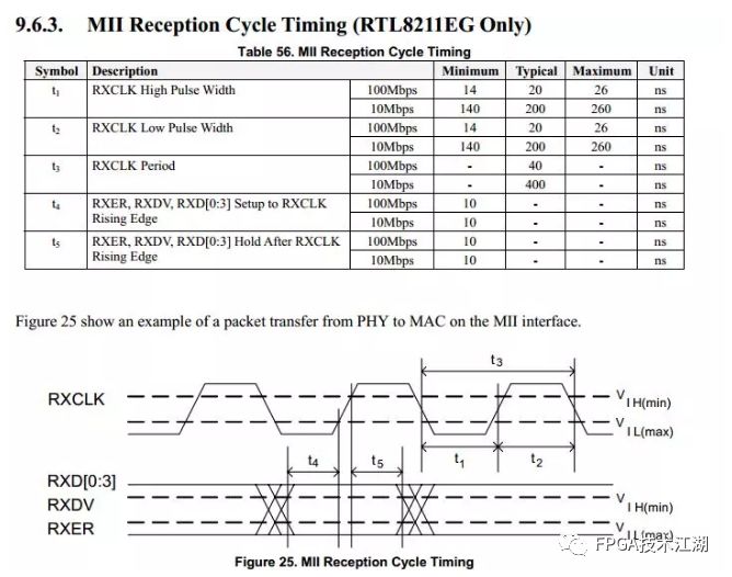先说百兆网,百兆网的接口一般为MII(Media Independent Interface),当然10M网用的也是MII接口。下图是一块以太网PHY芯片的一些手册资料截图。