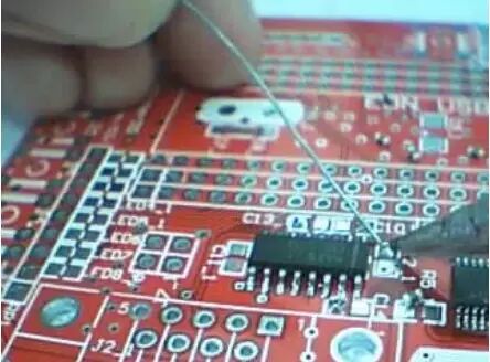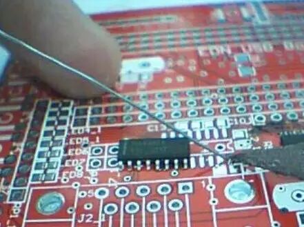 接下来的工作就是焊接另外一个引脚了,这样,小封装的元件也就被我们漂亮地焊接在板子上了。