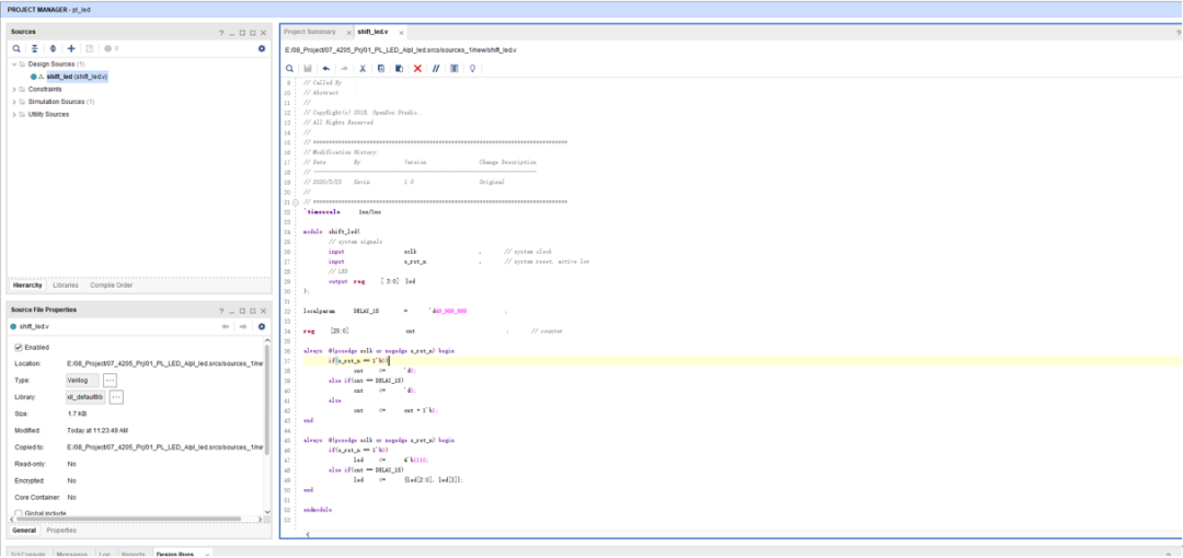 之后就能够在 DesignSources 下看到.v 文件了。