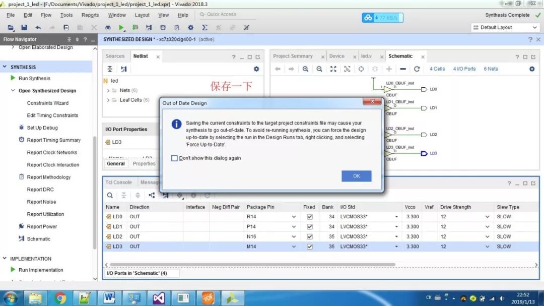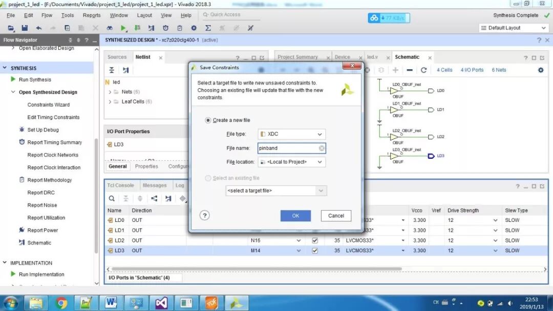 (5)综合完成后,打开原理图,在原理图上打开端口,进行引脚绑定